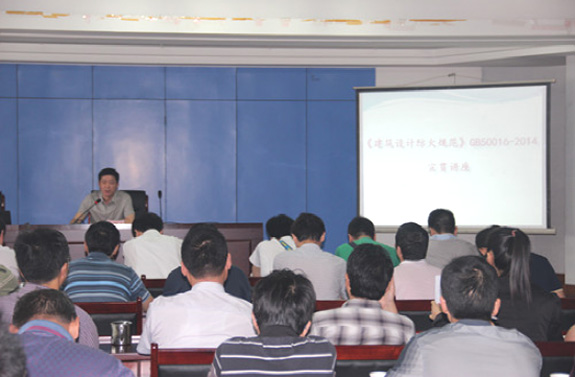市規(guī)劃院院長賀玉龍傳達了“省《規(guī)范》GB50016-2014宣貫培訓(xùn)”精神,并與參加省宣貫培訓(xùn)的胡自立、崔睿、李文成、沈光紅、陳潔、密齊峰六位同志一起,分別從規(guī)劃選址、平面布局、規(guī)劃和建筑工程設(shè)計等側(cè)重點,就新老規(guī)范的變化、新規(guī)范中的總則、術(shù)語和符號、廠房和倉庫、甲乙丙類液體及氣體儲罐(區(qū))和可燃材料堆場、民用建筑、建筑構(gòu)造、滅火救援設(shè)施、消防設(shè)施、電氣、供暖通風(fēng)和空氣調(diào)節(jié)等方面的重點內(nèi)容,向與會人員進行了傳達和講解。